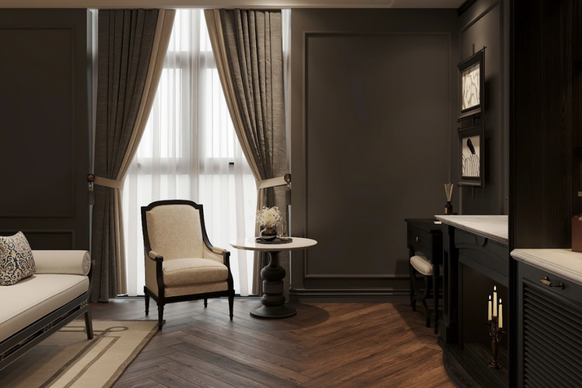 Căn phòng được thiết kế tinh xảo với giường cỡ lớn sang trọng, phòng tắm khép kín hiện đại và khu vực tiếp khách rộng rãi, ngập tràn ánh sáng tự nhiên. Mỗi chi tiết trong không gian này đều toát lên vẻ đẹp thanh lịch và sang trọng, mang đến cho bạn một kỳ nghỉ dưỡng đẳng cấp 5 sao, hòa quyện hoàn hảo giữa thiên nhiên biển trời Quang Khởi.